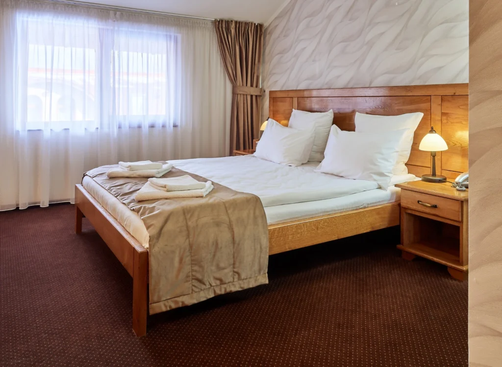Camere matrimoniale, twin, single și apartament, potrivite pentru sejururi de relaxare și călătorii de business.